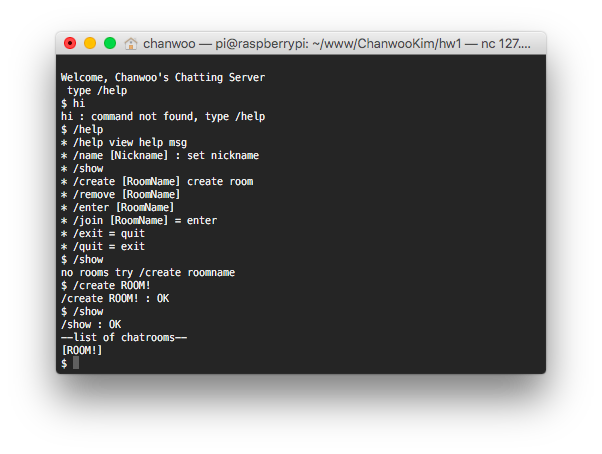 네트워크 프로그래밍 과목 수업 과제로 명령어를 지원하는 멀티유저,멀티 룸 채팅서버를 만들었다.